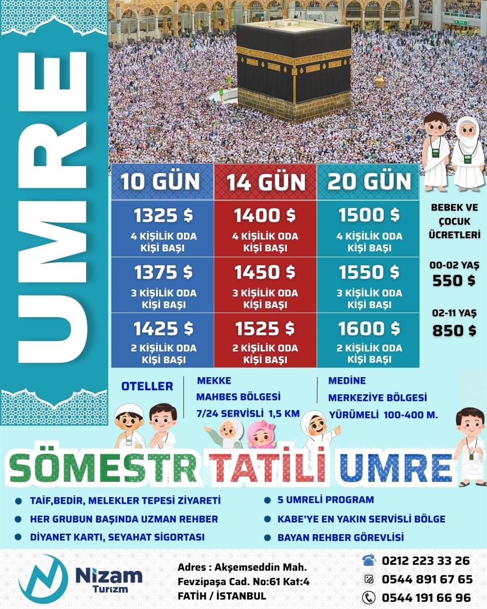 Bu kutsal yolculuğunuzda Nizam Turizm olarak her konuda yardımcınız ve destekçiniz oluyoruz.
